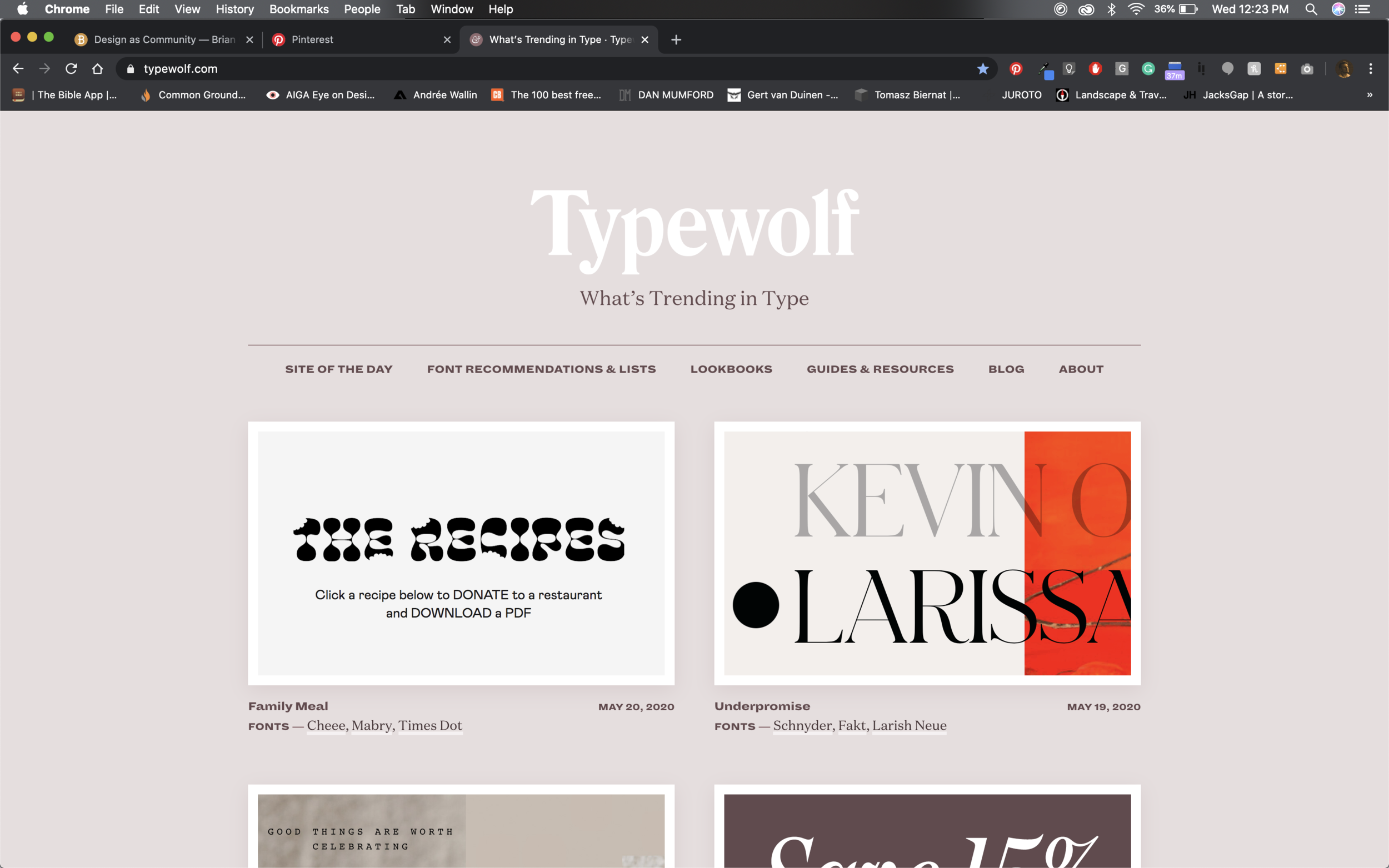 I’ve said before that I wouldn’t be where I am without Pinterest. You really can’t put a price on daily observation and education, and I’m grateful that it is a free resource. The benefit would be lost were it not for the people behind the boards, images and pages. Pinterest, Behance, Dribbble or otherwise, I’ve found that the best resource for any designer is the broader community of designers at large.